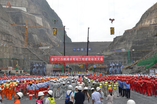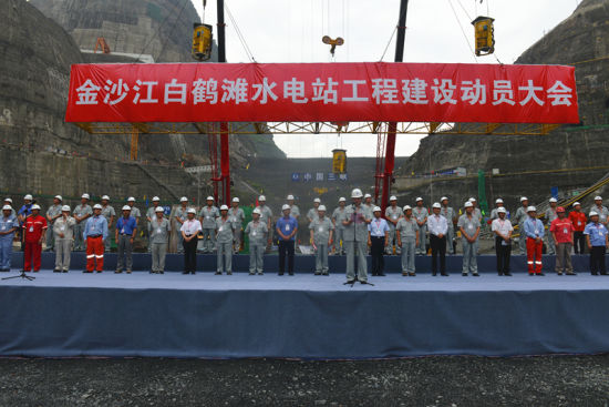 8月3日上午9点整,四川省宁南县和云南省巧家县交界,崇山峻岭之间,金沙江畔白鹤滩峡谷机器轰鸣。由中国葛洲坝集团三峡建设工程有限公司承建的千万千瓦级大型水电站——白鹤滩水电站举行动员大会。这是继溪洛渡、向家坝水电站建成投产后,金沙江流域水电开发的又一重大里程牌,对推进西部开发,实现“西电东送”,促进西部资源和东部、中部经济优势互补和西部地区经济发展具有深远意义。